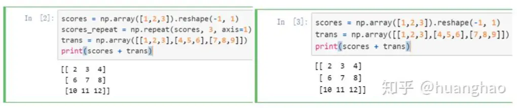 numpy在相加时可以自动扩充维度,横向和纵向都可以。